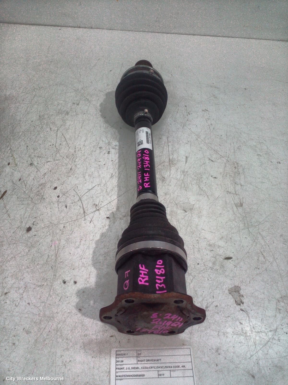 We have for sale a good used Right Driveshaft to suit AUDI Q7, FRONT, 3.0, DIESEL, CZZA/CRTC/DHXC/DHXA CODE, 4M, 09/15-