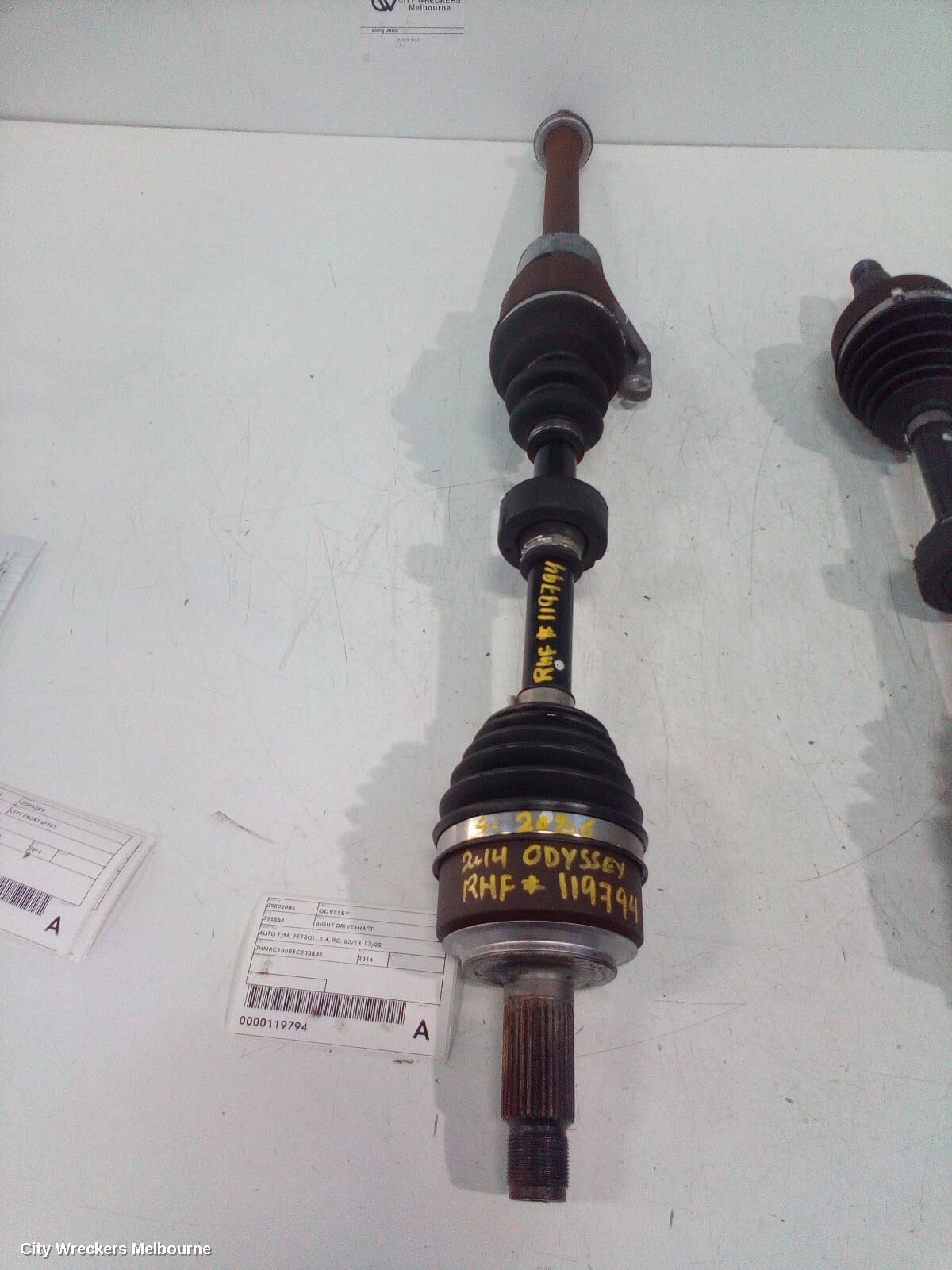 We have for sale a good used Right Driveshaft to suit HONDA ODYSSEY, AUTO T/M, PETROL, 2.4, RC, 02/14-03/22