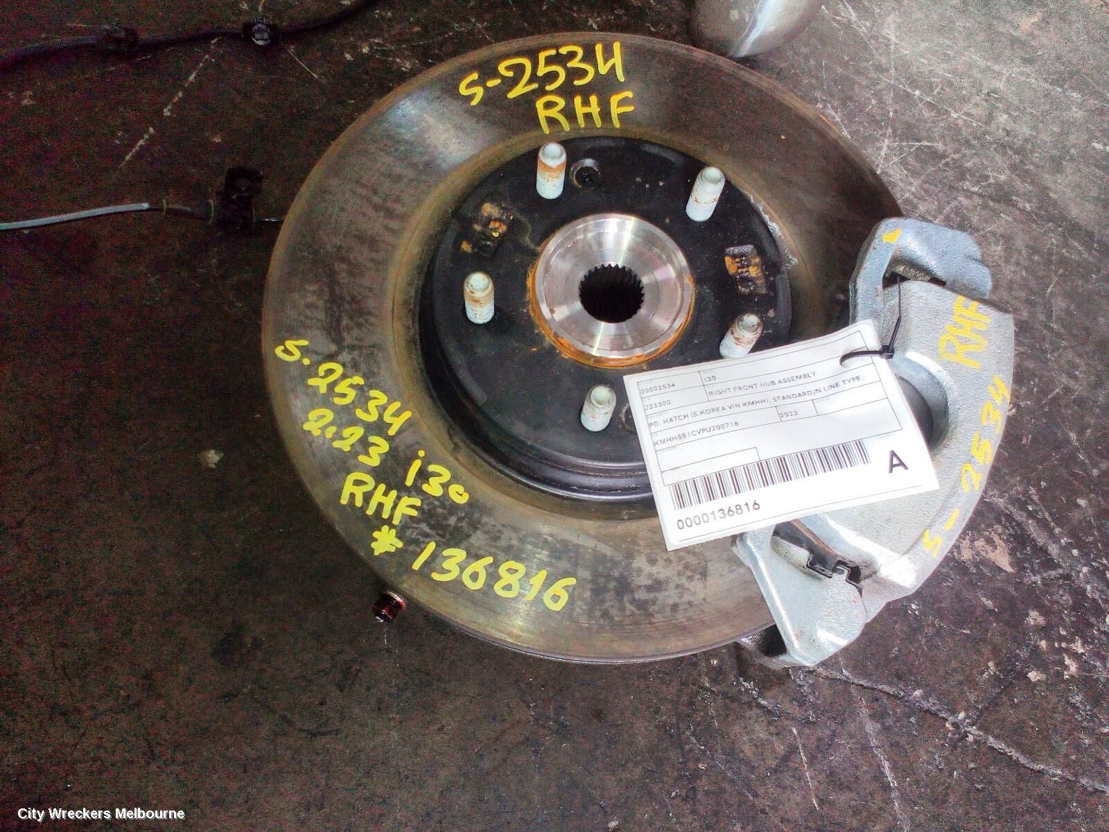 We have for sale a good used Right Front Hub Assembly to suit HYUNDAI I30, PD, HATCH (S.KOREA VIN KMHH), STANDARD/N LINE TYPE, 03/21-12/23