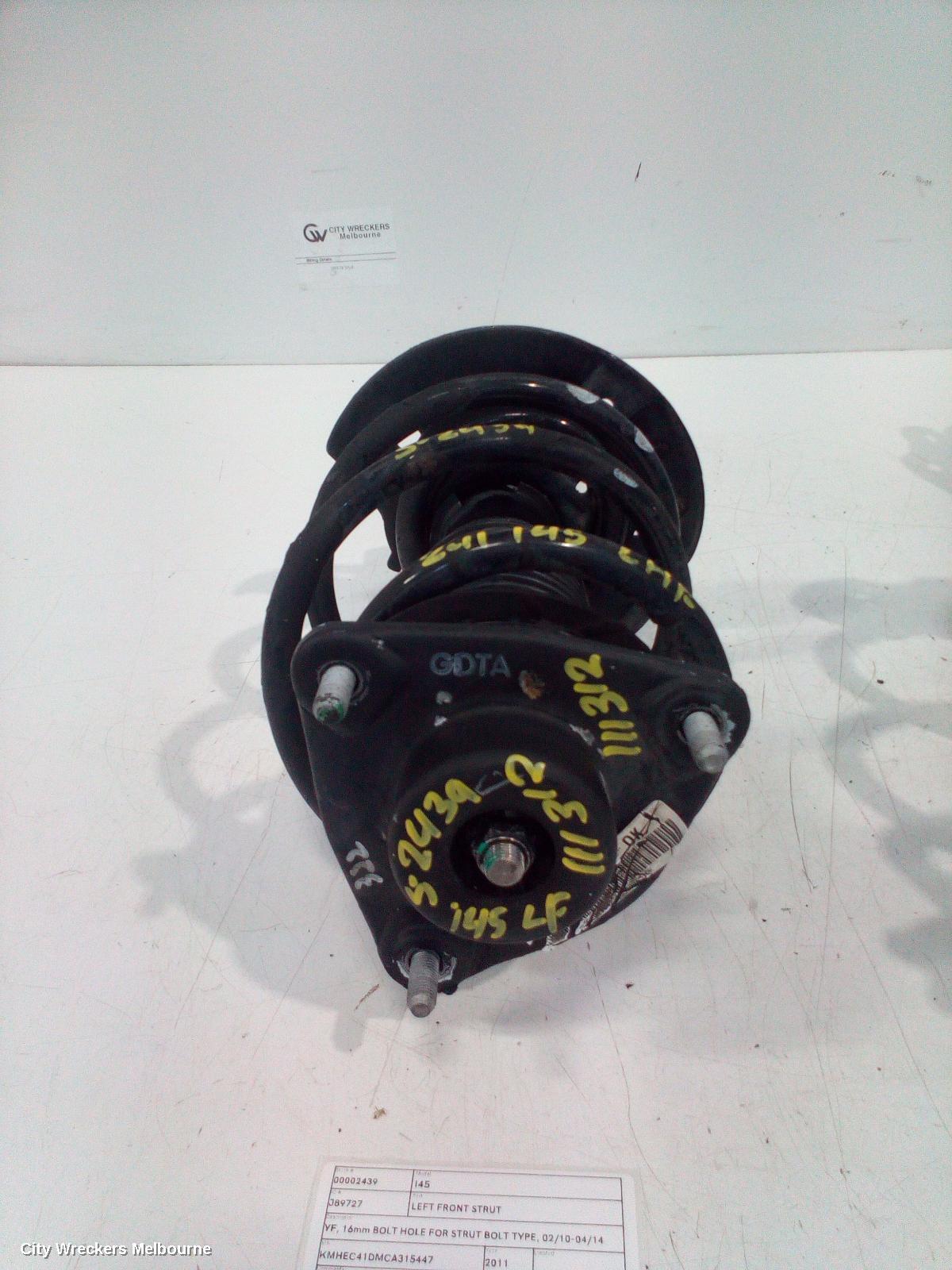 We have for sale a good used Left Front Strut to suit HYUNDAI I45, YF, 16mm BOLT HOLE FOR STRUT BOLT TYPE, 02/10-04/14
