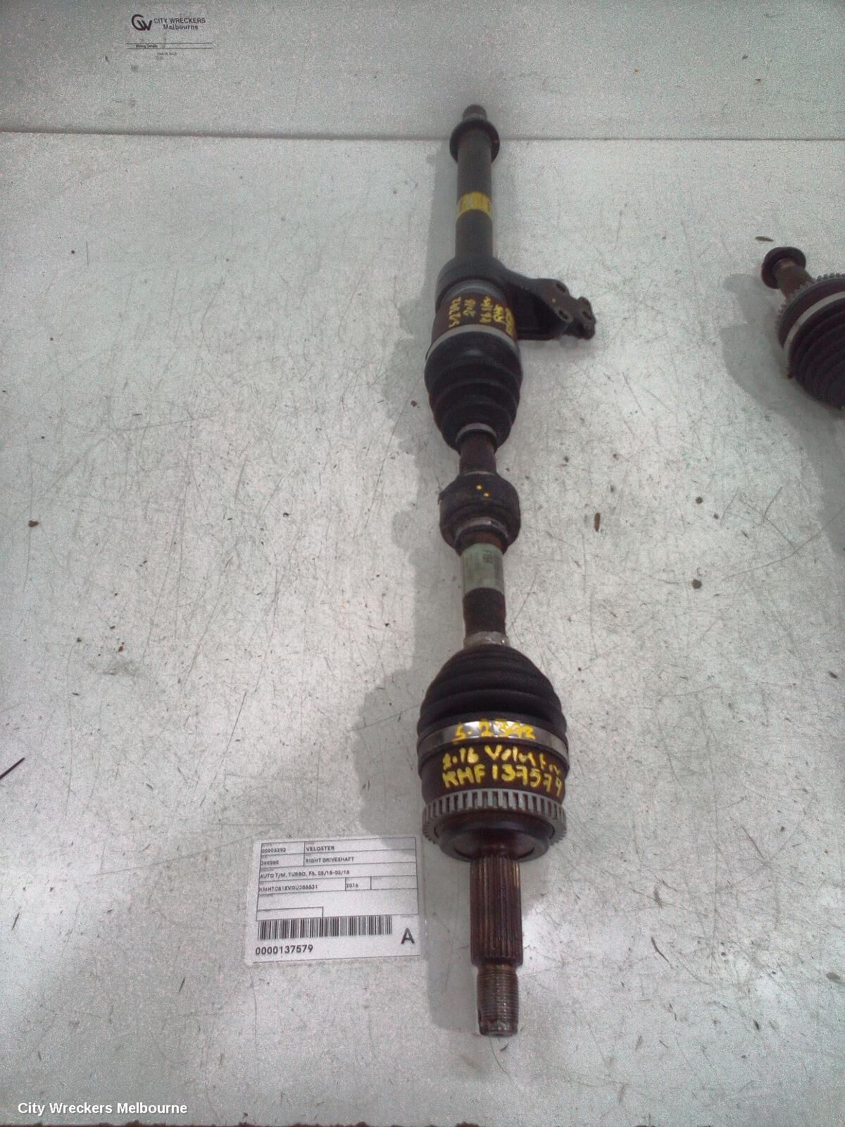 We have for sale a good used Right Driveshaft to suit HYUNDAI VELOSTER, AUTO T/M, TURBO, FS, 05/15-02/18