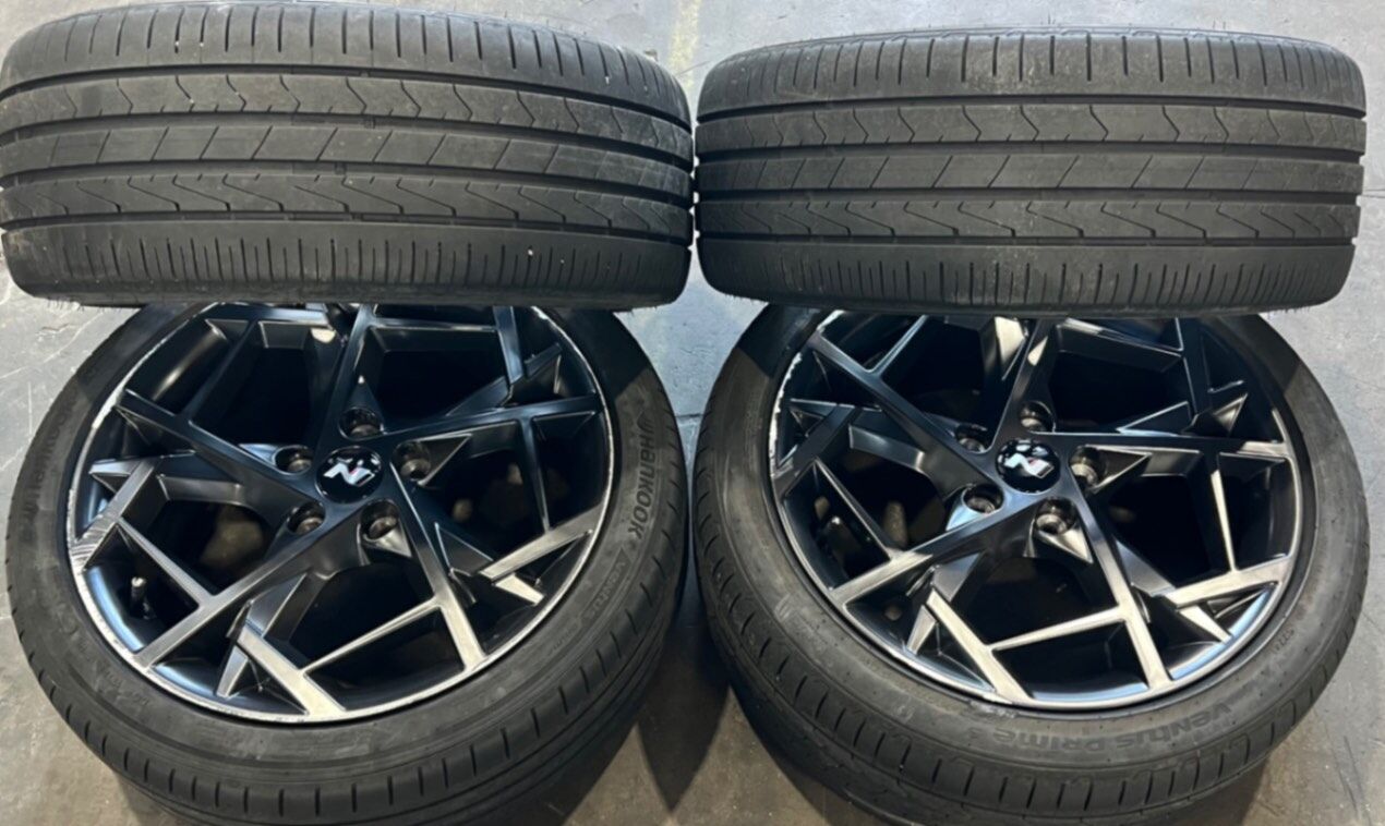 Set of 18 inch Hyundai i30 N with roadworthy tyres 2 wheel have scratches look at the picture