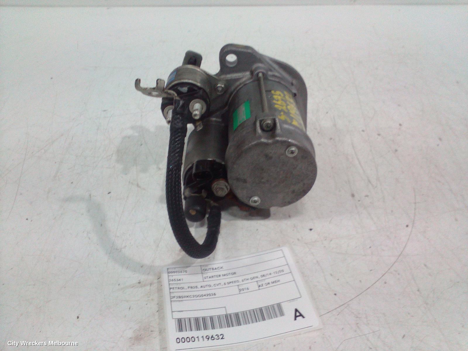 We have for sale a good used Starter to suit SUBARU OUTBACK, PETROL, FB25, AUTO, CVT, 6 SPEED, 6TH GEN, 08/14-12/20