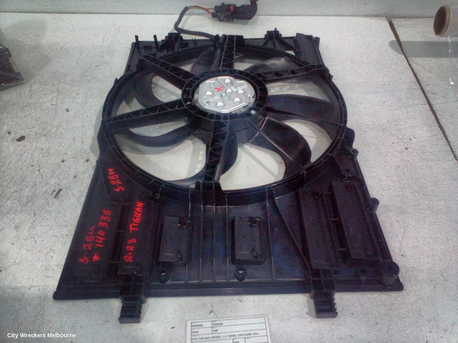We have for sale a good used Fan to suit VOLKSWAGEN TIGUAN, DUAL FAN ASSY, PETROL, 1.4, TURBO, CZEA CODE, 5NA, 06/16-02/24